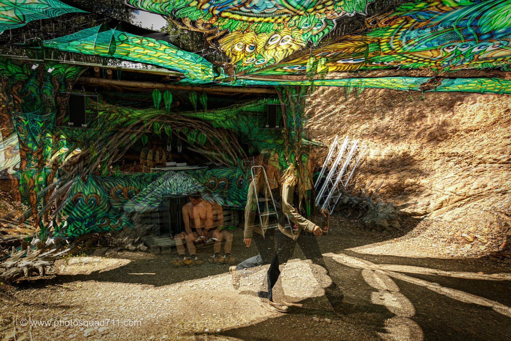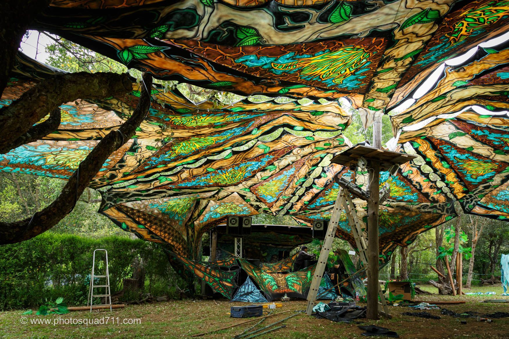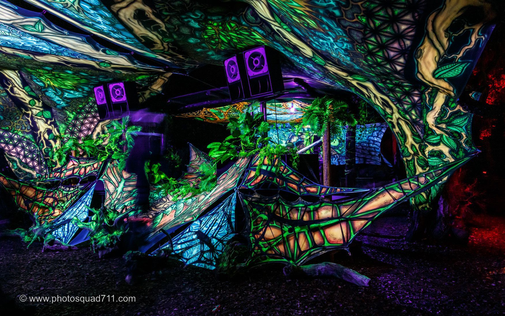 Die handgefertigten Schwarzlicht-Dekorationen verwandeln die Räume in etwas, das einem den Atem raubt. Ein audiovisuelles Erlebnis wie aus einer anderen Dimension!
